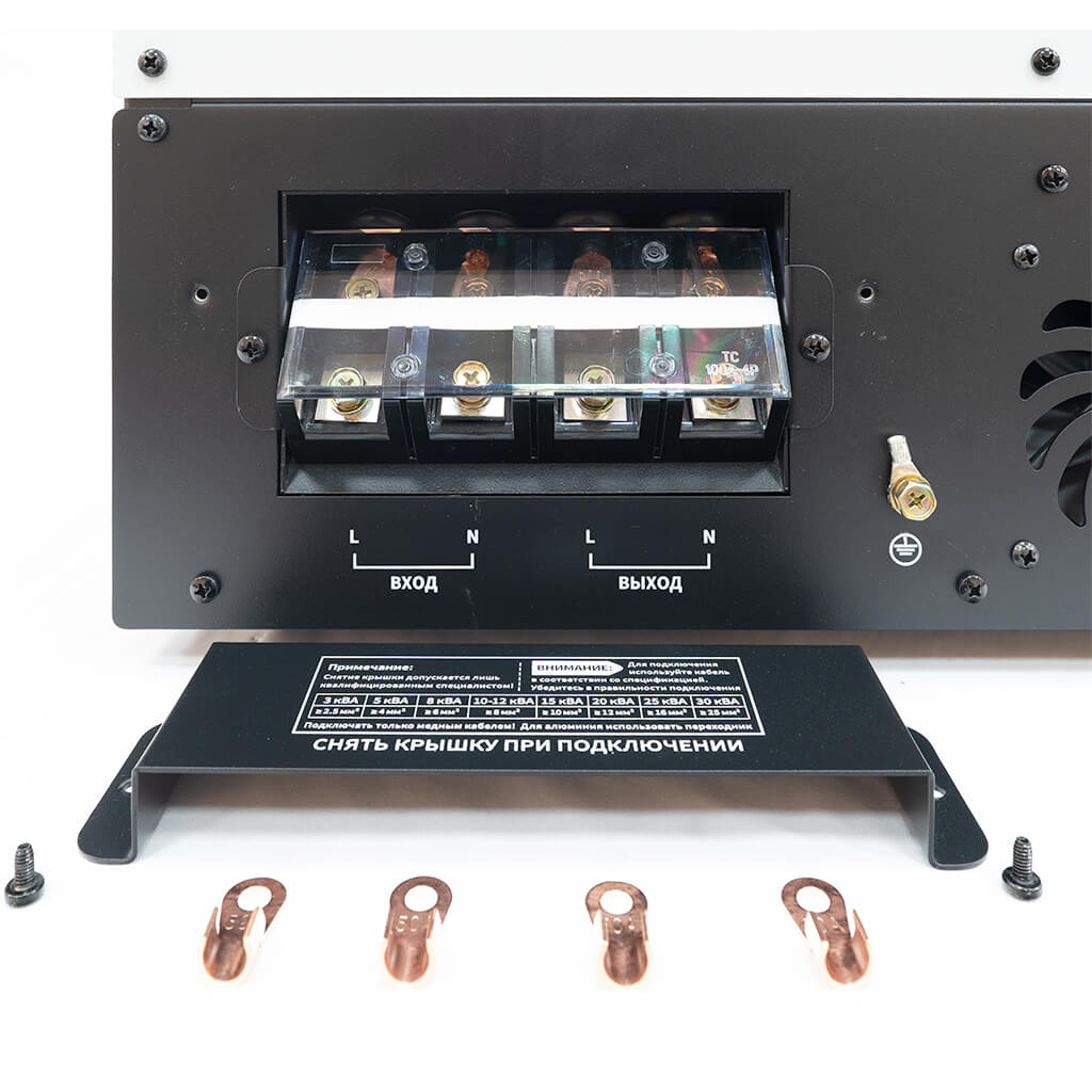 Стабилизатор Voltek ТСН-20кВт оснащен комплексом систем, обеспечивающим надежную защиту как потребителей, так и самого стабилизатора от любых нештатных ситуаций, и рассчитан на непрерывную круглосуточную работу в условиях больших по значению и длительности отклонений напряжения от номинального значения.