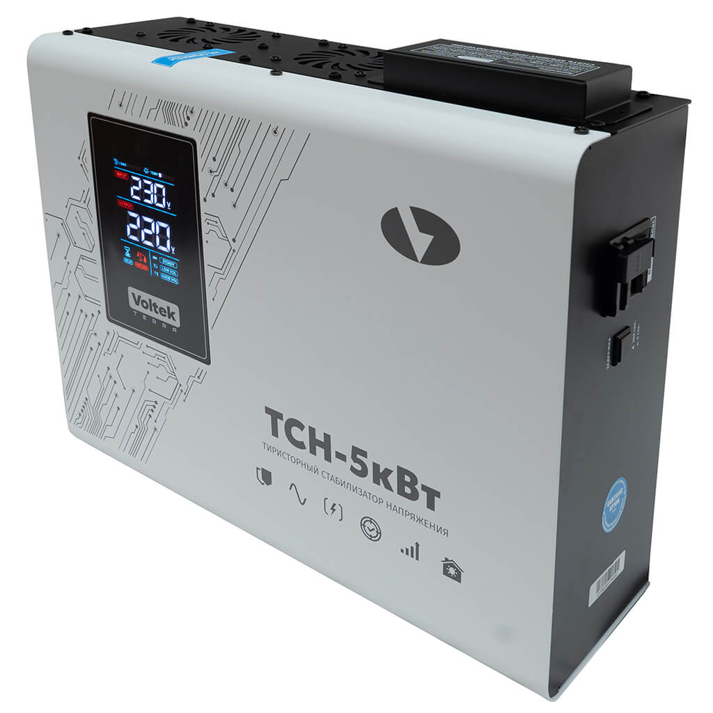 Стабилизатор Voltek ТСН-5кВт оснащен комплексом систем, обеспечивающим надежную защиту как потребителей, так и самого стабилизатора от любых нештатных ситуаций, и рассчитан на непрерывную круглосуточную работу в условиях больших по значению и длительности отклонений напряжения от номинального значения.